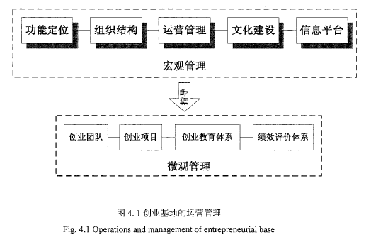 在对国内外高校创业基地运营管理模式现状进行简要概括,并重点分析大连东软信息学院的体系后,本部分通过借鉴国外的管理经验及东软信息学院的管理模式,提出了我国民办高校的一般性创业基地运营管理体系框架设计。如图所示,首先从宏观角度对民办高校创业基地的运营管理进行设计,最后从微观角度对创业基地内部运营管理进行规划。我国民办高校创业基地的管理还处于起步摸索阶段,因此,我们必须在借鉴世界上发达国家创业教育经验的基础上,形成具有中国特色的民办高校创业基地运营管理模式。有调查数据显示,创业团队、创业资金、创业项目、良好的心态和人脉资源是大学生认为创业成功最需要把握的因素。民办高校的创业基地应该将扶持大学生自主创业、孵化具有发展前景的企业作为中心目标,为大学生提供创业培训、政策咨询、项目开发、小额贷款、创业孵化和跟踪辅导等“一条龙”服务,从而为高校毕业生的创业路奠定坚实的基础。通过对创业基地三种运营管理模式进行分析后,本文认为民办高校的创业基地的理想运营管理模式就是:整个创业基地的运营管理都要围绕“扶持大学生的就业创业工作”这个中心点来进行的,实行学校主导、政府支持、校企合作的“三位一体”性运营管理模式。