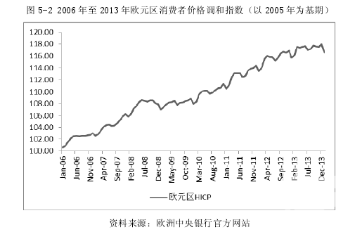 在金融危机爆发后,美联储通过第一轮和第二轮量化宽松货币政策购买大量的美国国债来向美国经济市场乃至世界经济市场投放美元,两轮量化宽松政策共投放了逾 13000 亿美元。巨额的货币增量在推动美国经济复苏的同时也推升了全球范围的通货膨胀预期,在美国、欧元区、日本和中国这四大经济体中,中国面临的通胀风险最大:在图 5-1 中,中国的 CPI 增长速度明显高于其他经济体,而2010 年 4 月后美国的 CPI 增速则较为稳定。 通常来讲,美国实行量化宽松货币政策、增加基础货币都会导致美国本土商品价格上涨、通货膨胀加剧,然而当前的实际情况却并非如此。这是因为受本次金融危机影响,美国货币的乘数效应并不明显导致短期内美国通胀预期不大——2008 年 9 月至 2009 年 6 月期间美国 M1 货币乘数和 M2 货币乘数分别从 1.617 和1.656 降至 0.904 和 0.942,此后虽有小幅震荡但与危机前的数据相比,差距依然巨大。此外,美国政府通过转移支付等方式将增发的美元返还给美国民众,并通过医疗体系改革等手段提高了美国居民的生活福利水平,而美国从其他国家大量进口的商品平抑了国内可能上涨的物价,导致 QE1 和 QE2 实行以后美国的 CPI 并没有出现大幅增长。 然而从长期来看,当危机渐渐过去、经济形势有所好转之时,货币乘数必然会随之上升,之前那些由于银行出于风险规避考虑而滞留在金融系统内部的资金也会随着经济的复苏释放出来,货币供应量的增加和乘数效应的增大必然会导致美元激增、供过于求。如果美联储和美国政府无法预见这一情形的话,那么可以想见彼时的美国经济