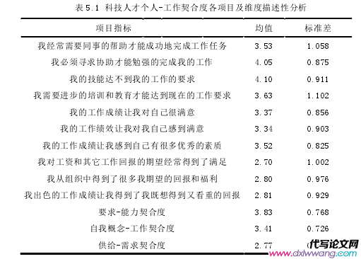 5.1.1 科技人才个人-工作契合度的描述性分析 ...........27