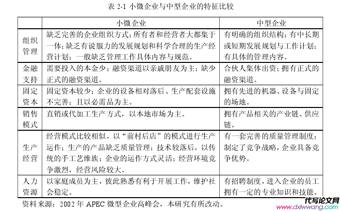 2.1 小微企业的界定与特征