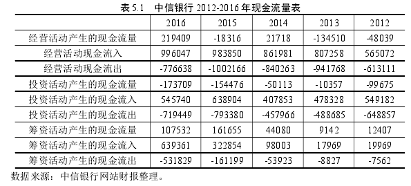 从前面关于企业生命周期理论研究可以知道,企业生命周期的判定方法有很多种,有定量的,也有定性的,甚至两者结合的。学者宋常通过认证得出采用销售增长率,资本支出与企业年龄,现金流分类组合法等三种不同的划分方法判定企业生命周期,结果趋于一致。因此本文结合中信银行实际情况,根据自身研究能力,选择比较实用的现金流分类组合法进行判定。从中信银行 2012 年以来的现金流量表来看,中信银行投资活动稳定保持在负值,筹资活动保持在正值,而经营活动呈现周期性变化的现象。根据不同生命周期呈现的现金流特征情况,可以初步判断中信银行目前所处的阶段为企业生命周期的成长期,但由于外界环境的冲击,银行不断需要寻找新的增长点重新发展,所以才会出现经营活动现金流反复情况。对于一般企业而言,初创期企业发展最直接期望达到的效果就是企业的存活,其理财目标即是销售额最大化,作为金融企业的中信银行也不例外,其财务战略的目标则是规模最大化。对于处于初创期的中信银行而言,其财务战略制定的关键是如何利用现有的资源,在最短的时间里生存下来,并实现负债业务,资产业务规模的壮大,银行能够存活下来,不被迫关闭的问题。当中信银行进入成长期后,由于其整体发展战略变化,相应的其理财目标将进一步转换,由原来的规模最大化转变成利润最大化。因此此时的财务战略重点是合理做好资源配置,充分利用一切可利用的资源,把钱花在刀刃上,通过提高财务效率,以期待更多利润创造,为银行进一步发展做出努力。