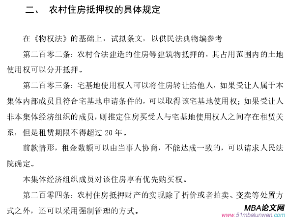 一、 采用房地分离原则构建农村住房抵押权..........30