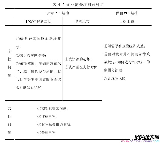 4.2.3 保留 VIE 结构分拆上市的问题 .....40