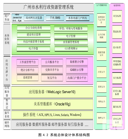 广州市水务局行政资源管理信息系统主要建设内容为 6 大部分,包括应用系统升级开发、数据库建立和迁移录入、安全体系和容灾备份、运行管理机制的制定、水务行政业务标准编制和软硬件环境建设等。是一个综合性的行业业务平台,具有较强的行业普遍性和专业性。论文的研究生果不仅较好地分析了系统各方面的需求,提供了一种切实可行的平台体系,具有很好的现实意义。