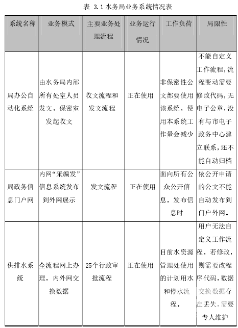 现有业务系统有局办公审批系统、广州市水务局政务信息门户网、供排水系统(全流程网上办理系统)、三防指挥系统。