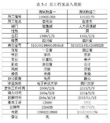 以下数据的录入主要用来测试档案录入的各项功能,详细见表 5-1: