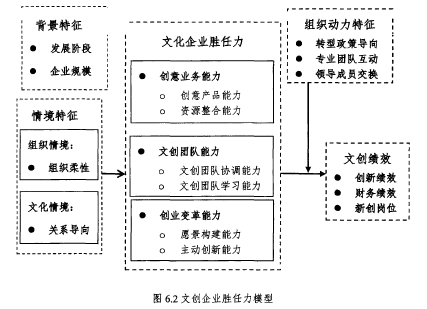 本研究通过对组织水平上的文创企业胜任力的系统研究,试图结合我国变革发展背景下所具有的独特的组织情境特征和文化情境特征,基于情境一能力交互的视角构建针对我国文创企业的胜任力模型,即文创胜任力模型,该模型尤其突出了在变革情境下,企业为增强适应能力、谋求新的发展所需具备的公司创业胜任力的能力要素。在此基础上,通过实证检验该模型对文创绩效影响的来验证模型的效应。本文首先在大量阅读文献和文化创意产业相关实践报告的基础上,探讨了我国文化创意产业所面临的独特的组织情境特征和文化情境特征,并对胜任力、专业团队互动、转型政策导向、领导成员交换等相关研究进行了文献归纳和总结,在此基础上,本研究设计了理论构思,提出了研究假设,选择了相应的研究路线图。其次,基于理论构思,笔者继续开展访谈调研。通过访谈及案例研究,本研究对研究构思进行了初步的验证,并构成了进一步问卷编制和调研的基础。最后,本研究对文化创意产业的情境特征、胜任力及其与文创绩效关系‘间的关系进行了问卷调研,通过多种统计分析方法包括因子分析、方差分析、相关分析和回归分析等,实证研究结果基本验证了研究假设。