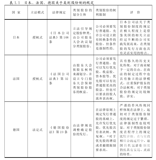 1.我国的类别股份制立法体现不明晰......23
