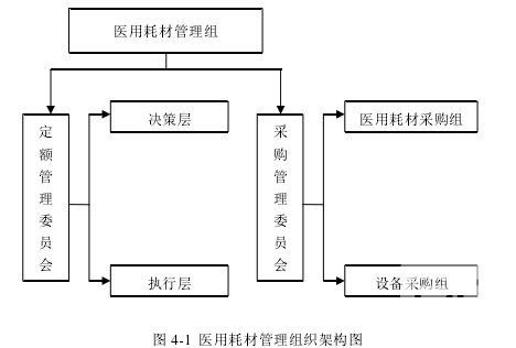 BYFY 应当建立完善医用耗材管理架构,成立医用耗材管理委员会,下设储备定额管理委员会和采购管理委员会。其中,定额管理委员会下设定额管理决策层和定额管理执行层(由各科室医务人员组成),专设定额管理办公室,用于定额管理人员进行储备定额的确定和调整的审议等工作,与采购管理组相互配合,相互监督,建立共同参与、相互制约的监督机制,提升医用耗材的预算和采购控制水平。医用耗材管理委员会组织架构如图 4-1 所示。医务人员是医院的重要组成部分,医院的正常经营全靠医务人员支撑,他们为医院经营效益和社会效益的提高做出了突出的贡献。在信息化建设发展的过程中,应当聘请专业老师对医院的医务人员和相关工作人员进行定期培训,包括 BYFY 的医院文化理念、医生职业操守和道德的传承和引导,医生职业技能以及信息系统操作技能的培训,以此来提高医务人员工作能力,增强员工的凝聚力,间接地提升医院的运营管理水平。 医院通过信息化建设,在减小了医用耗材流转受人为因素影响程度的同时,也使医院面临的风险趋向复杂化和多样化。因此,对于医院来说,要想更好地将信息化系统为我所用,必须要建立完善的风险评估机制,组建风险管理和评估团队,为医院风险评估机制的顺利实行奠定基础。 医院应当使医用耗材流转所涉及到的各职能科室都参与到风险评估管理中,组建风险评估团队。医用耗材流转主要涉及的职能部门是设备科、财务科和耗材使用科室。医院应通过考核从各职能科室选择固定人员组成风险评估团队,将通过风险评估体系识别出的风险分散到每个部门,各部门各司其职,避免或降低本科室的风险。同时,应当建立相应的考核机制,对各部门的风险管理人员进行定期或不定期考核,并且实现考核结果与人员工资薪金和晋升等直接挂钩,促进人员之间的相互监督和有效配合。